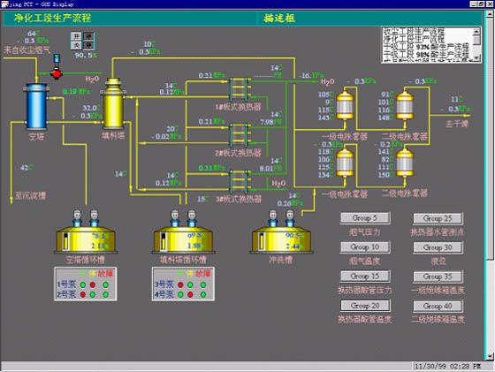 For the main smelting plant building (bottom-flowing smelting furnace, bottom-flowing converting furnace and anode furnace) of the project, Emerson Delta-V series distributed control system is used for the monitoring and control of the process flow, and the software configuration programming is completed by ENFI. Proper detection device and control technology are used for the project according to the process, and standard control system is formed by preparing process control software package, thus improving oxygen bottom-blowing smelting and oxygen bottom-blowing converting process control level. It is popularized in similar projects as a process control package.