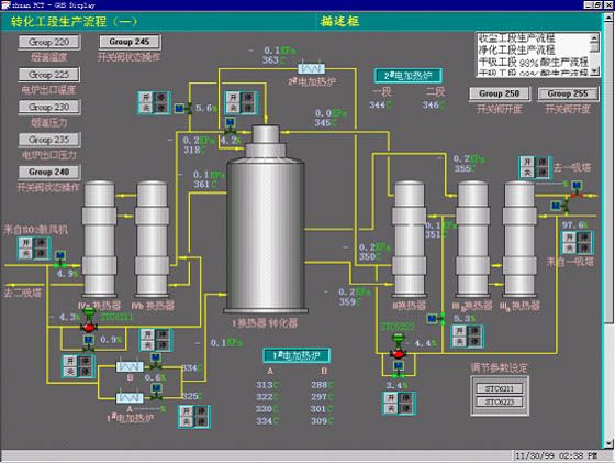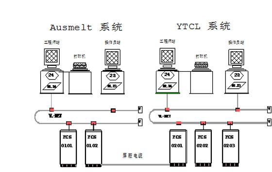 Conversion process control display (6) Yunnan Tin Company Limited projectThe DCS of Yunnan Tin Company smelter’s smelting system and waste heat power station is YOKOGAWA CENTUM CS 1000 system, which is a production control system for small and medium-sized process control. This system is featured by reliability, universality and personal computer environment openness etc., thus facilitating system configuration and operation control.According to the whole-plant process control requirements, smelting DCS consists of two independent CENTUM CS1000 systems: Ausmelt system and YTCL system. Ausmelt system is mainly to monitor and control Ausmelt furnace part, while YTCL system is to monitor and control the auxiliary part of Ausmelt furnace and other process flows. Shielded cables are used to connect the I/O card of the two systems for realizing point-to-point data communication.